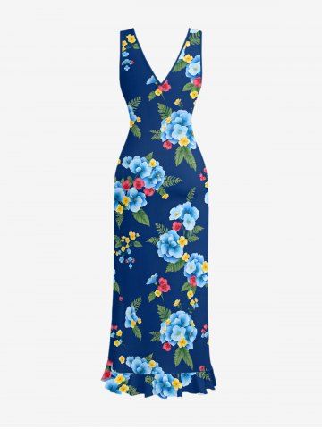 Robes Moulantes > Robe hawaïenne à imprimé floral tropical et feuilles, à volants et fente
