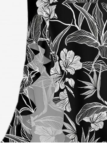 Robe hawaïenne à imprimé floral tropical et feuilles, à volants et fente - Noir - Noir
