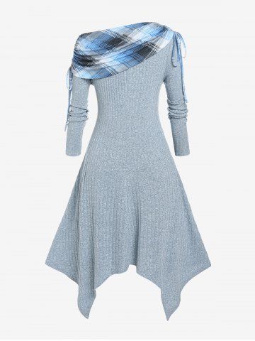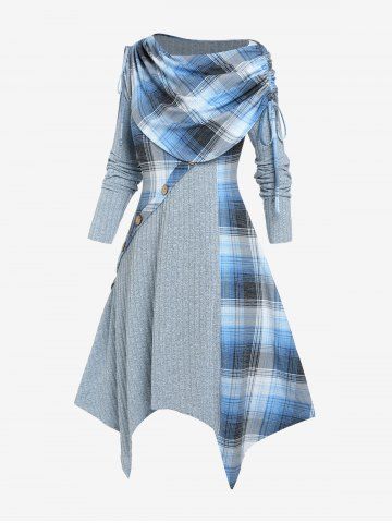 l*****e5Plus Size Foldover Cinched Plaid Handkerchief Midi DressColor: LIGHT BLUE Size: 3XVery cozy dress! Perfect for the holidays or just going out shopping! I love it!