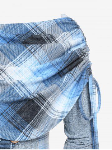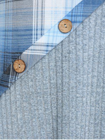b*****d4Plus Size Foldover Cinched Plaid Handkerchief Midi DressColor: LIGHT BLUE Size: LSuper soft, very comfortable. Fits like a size 16 and has stretchy material. Glad I bought it! I love the vibrant blue against the gray. My breast size is 36DDD, so it doesn’t fit as well on top as I’d hoped, but still cute.