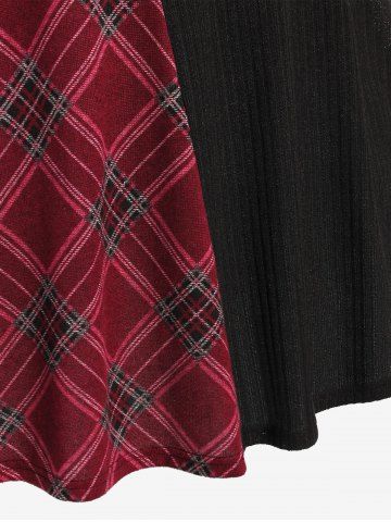 Robe trapèze en maille à carreaux côtelée à manches longues grande taille - Rouge - Rouge