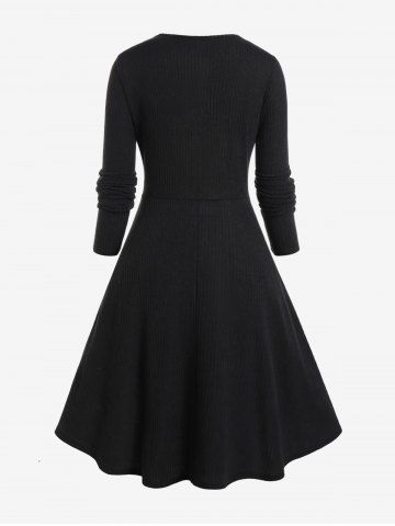 Robes Pull > Robe trapèze en maille à carreaux côtelée à manches longues grande taille