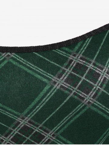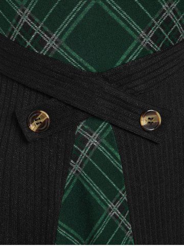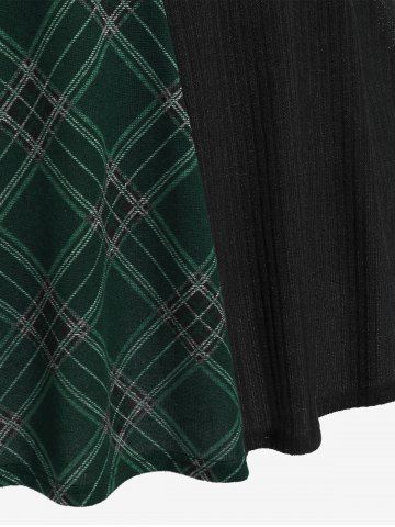 Robe trapèze en maille à carreaux côtelée à manches longues grande taille - Vert - Vert