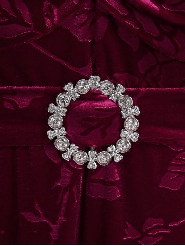 Plus Size Rhinestones Buckle Ruched Floral Velvet Dress