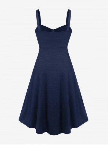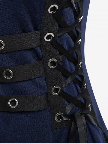 Robe Mi-Longue Haute Basse Zippée Bouclée Grande Taille à Lacets avec Œillet - Bleu Profond - 5x | Us 30-32