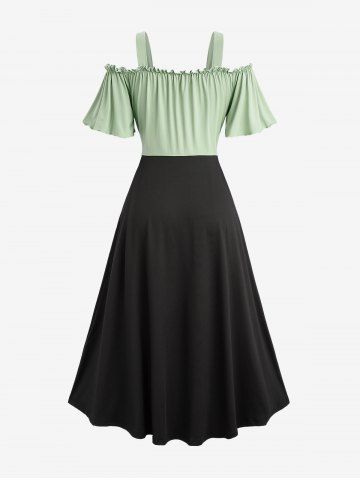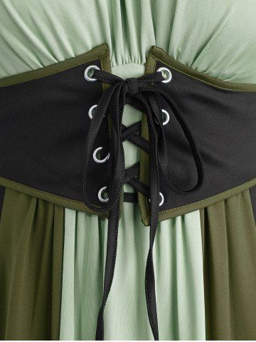 Robe trapèze style Renaissance médiévale grande taille, épaules dénudées, volants froncés, colorblock, lacets, ceinture, corset vintage - Vert Clair - Vert Clair