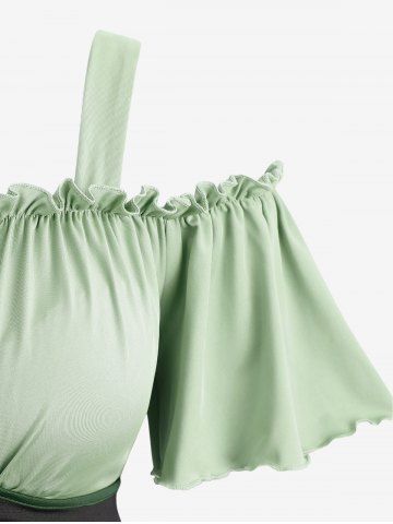 Robe trapèze style Renaissance médiévale grande taille, épaules dénudées, volants froncés, colorblock, lacets, ceinture, corset vintage - Vert Clair - Vert Clair