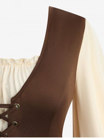 Robe vintage 2 en 1 grande taille style Renaissance à lacets et manches évasées - Café Profond - 3x | Us 22-24
