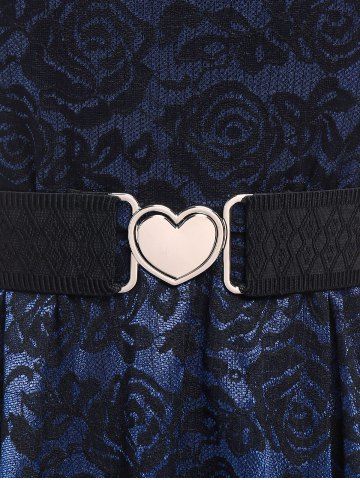 Robe Vintage Ajustée Evasée Ceinturée Bouclée Fleurie en Dentelle à Bretelle Grande Taille - Bleu Profond - 2x | Us 18-20