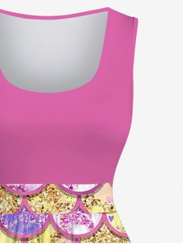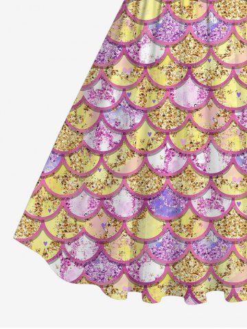 Robes Vintage > Robe Vintage Brillante 3D Ecaille de Sirène Imprimée de Grande Taille à Paillettes