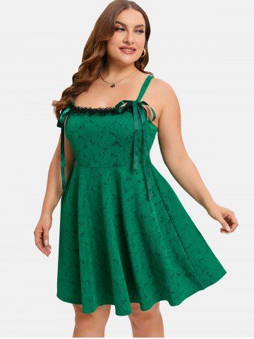 Robe Vintage en Dentelle Florale à Ruban Grande Taille - Vert - Vert