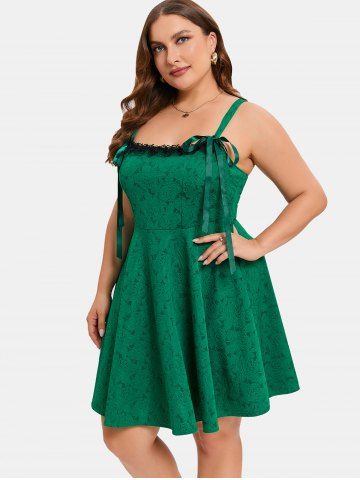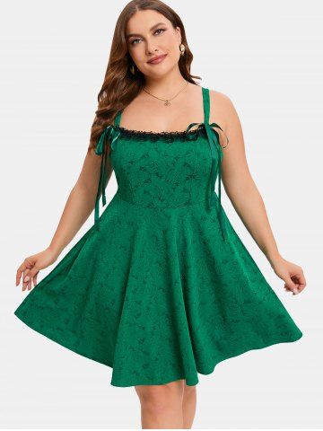 Robe Vintage en Dentelle Florale à Ruban Grande Taille - Vert - Vert
