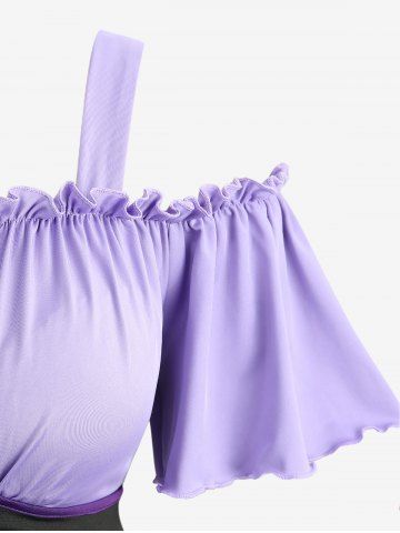 Robe trapèze style Renaissance médiévale grande taille, épaules dénudées, volants froncés, colorblock, lacets, ceinture, corset vintage - Pourpre - Pourpre