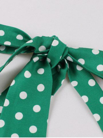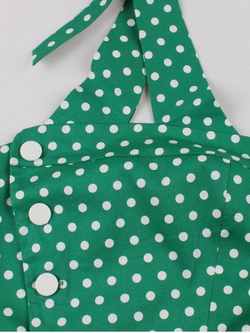 Robe Vintage à Pois Imprimé avec Bouton Au Dos à Col Halter - Vert - Vert
