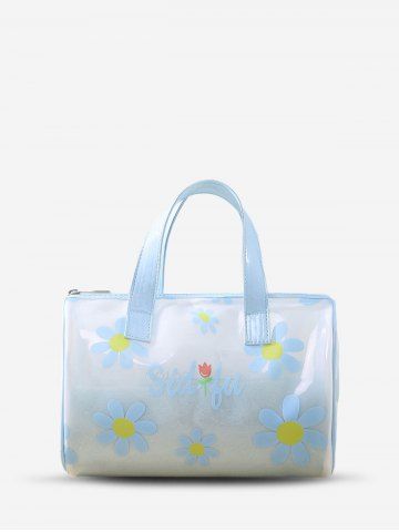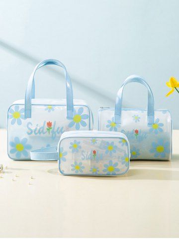 Sac de Rangement de Toilette de Voyage Transparent Lettre Papillon Fleuri en PVC - Bleu - Bleu