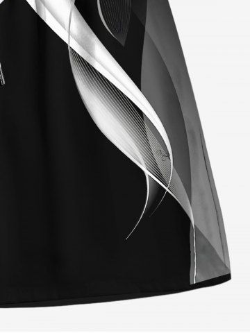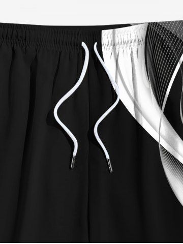 Short de Plage Hawaïen Ombre Imprimé de Grande Taille à Cordon - Noir - Noir