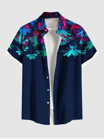 Shorts> Chemise hawaïenne grande taille à imprimé feuilles tropicales et poches boutonnées pour homme