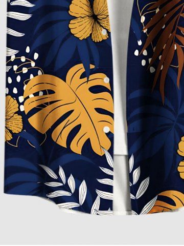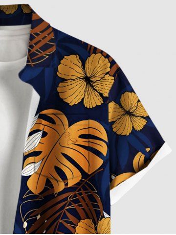 Shorts> Chemise hawaïenne grande taille à imprimé feuilles tropicales, branches et fleurs, avec poches boutonnées, pour homme