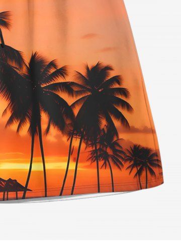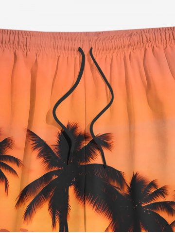 Plus Size Coconut Tree Ombre Dusk Sunset Print Hawaii Drawstring Beach Shorts For Men - Orange Foncé - 4xl