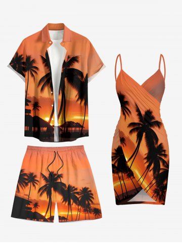 Plus Size Coconut Tree Ombre Dusk Sunset Print Hawaii Drawstring Beach Shorts For Men - Orange Foncé - 5xl