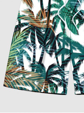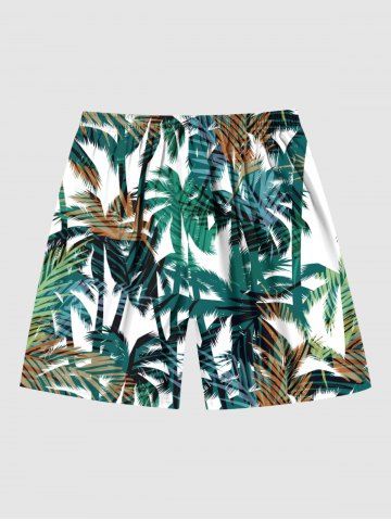 Short de Plage à Imprimé Feuilles D'Arbre Tropical avec Cordon de Serrage Grande-Taille pour Hommes - Vert Profond - L