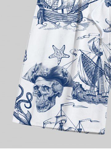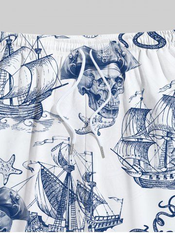 Short de Plage Crâne Dessin Animé avec Poches Grande Taille à Cordon - Blanc - Blanc