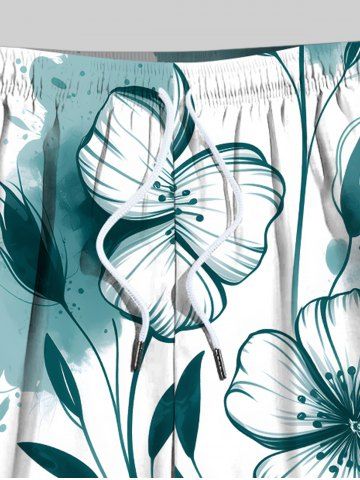 Short de plage grande taille à cordon de serrage pour homme, imprimé floral aquarelle, peinture à l'encre hawaïenne - Vert - Vert