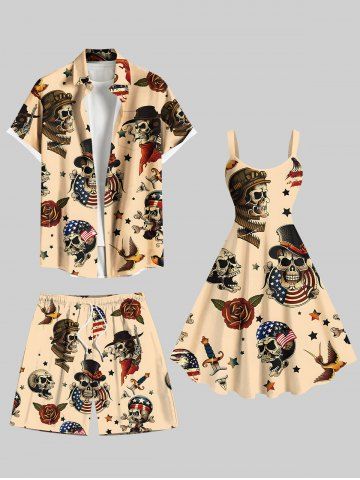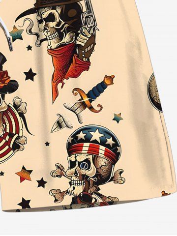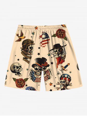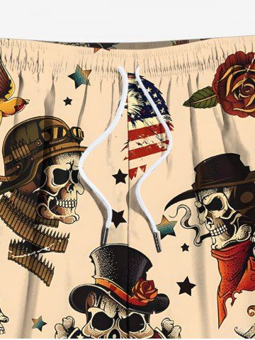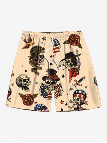 Short de plage grande taille avec cordon de serrage, imprimé tête de mort, pirate, drapeau américain, rose, fleur, aigle, hawaïen, pour homme - Café Lumière - Xl