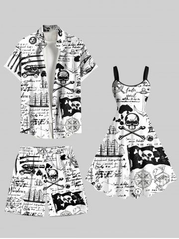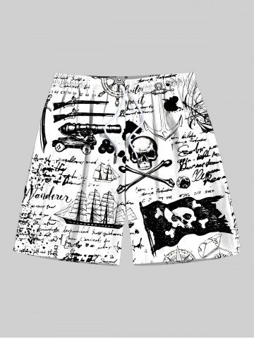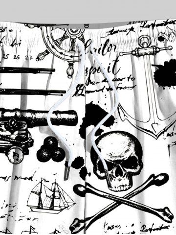 Short de plage grande taille avec cordon de serrage, imprimé tête de mort, pirate, voilier, ancre, lettres, croisière hawaïenne, pour homme - Blanc - Blanc