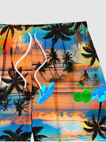 Short de plage hawaïen à cordon de serrage, imprimé coucher de soleil ombré avec cocotier, grande taille, pour hommes - Multi - Multi