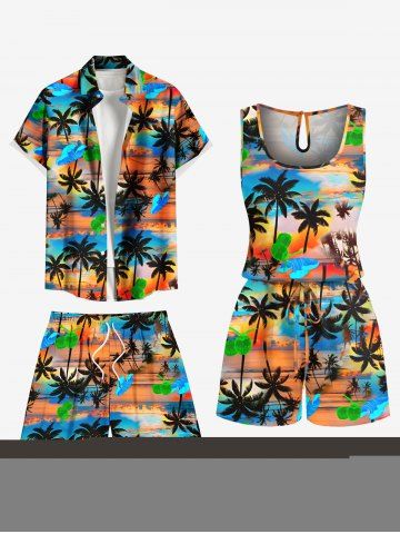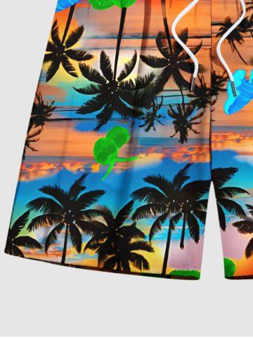 Short de plage hawaïen à cordon de serrage, imprimé coucher de soleil ombré avec cocotier, grande taille, pour hommes - Multi - Multi
