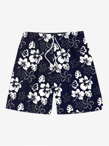 Shorts> Short de plage hawaïen grande taille à imprimé fleurs d'hibiscus et cordon de serrage pour homme