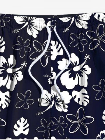 Shorts> Short de plage hawaïen grande taille à imprimé fleurs d'hibiscus et cordon de serrage pour homme