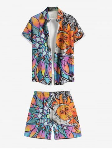 Shorts> Short de Plage Hawaïen en Blocs de Couleurs Lune et Soleil Imprimés de Grande Taille avec Cordon