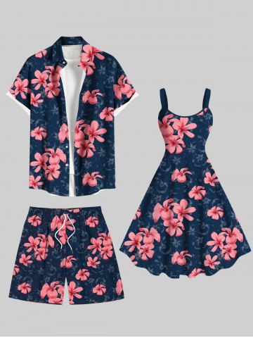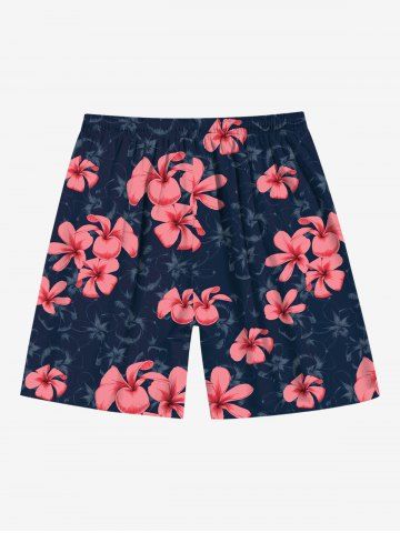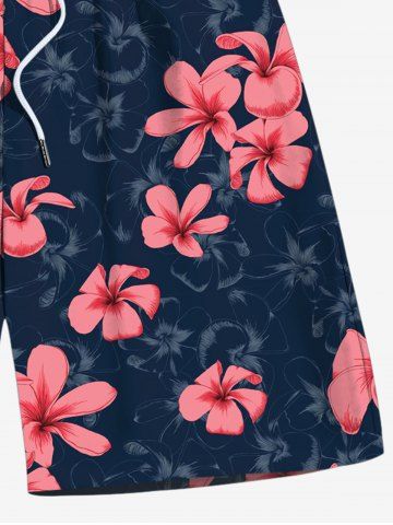 Short de Plage Hawaïen Fleuri Ombré Imprimé de Grande Taille à Cordon - Bleu De Minuit - 6xl