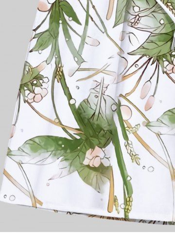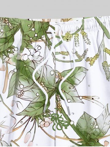 Short de plage hawaïen grande taille à cordon de serrage et imprimé fleurs, feuilles et branches pour homme - Blanc - Blanc