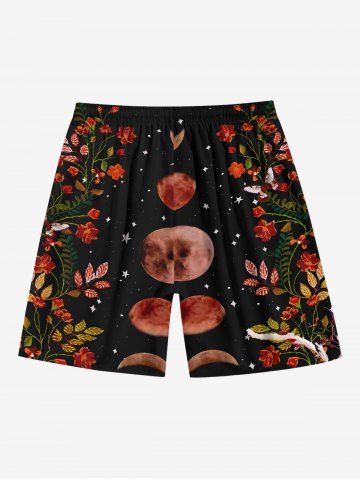 Shorts> Short de plage hawaïen grande taille à cordon de serrage pour homme, imprimé fleurs, feuilles, lune, étoiles, galaxie
