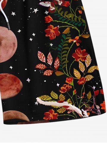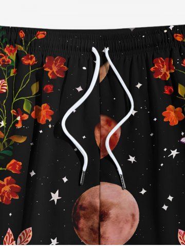 Short de plage hawaïen grande taille à cordon de serrage pour homme, imprimé fleurs, feuilles, lune, étoiles, galaxie - Noir - Noir