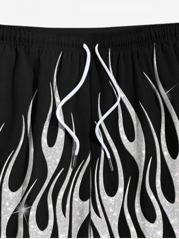 Short de plage hawaïen grande taille à imprimé flammes scintillantes et cordon de serrage pour homme - Noir - Noir