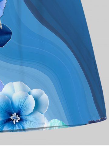 Short de plage hawaïen grande taille à imprimé floral aquarelle ombré et cordon de serrage pour homme - Bleu - Bleu