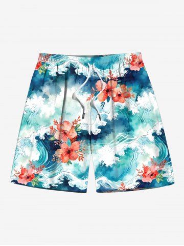 Shorts > Short de plage hawaïen grande taille à imprimé floral et vagues ombré avec cordon de serrage pour homme