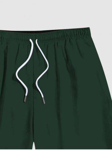 Short de Plage Hawaiien en Couleur Unie Grande Taille à Cordon pour Homme - Vert - Vert