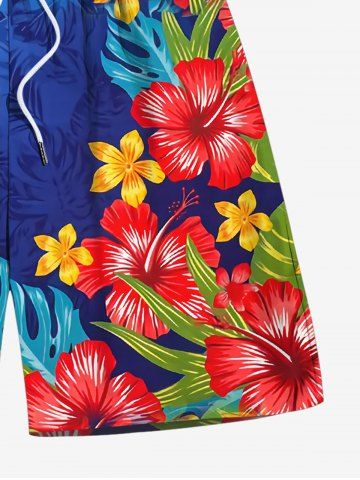 Short de Plage Hawaiien Ombré Feuille Tropicale Imprimée de Grande Taille à Cordon - Bleu - Bleu