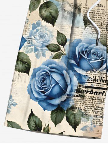 Shorts > Short de Plage Hawaiien Rose Feuille et Fleur Imprimées de Grande Taille avec Cordon