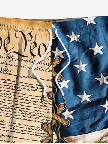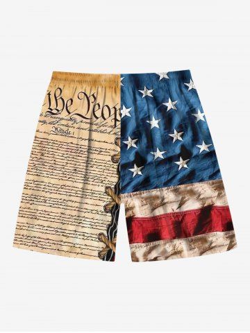 Shorts > Short de Plage Imprimé Journal 3D à Cordon de Serrage Grande Taille pour Homme