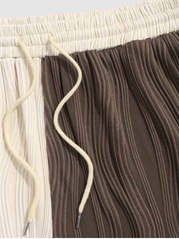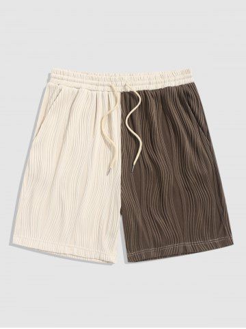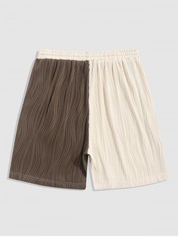 Short Décontracté Texturé en Blocs de Couleurs - Café Profond - S