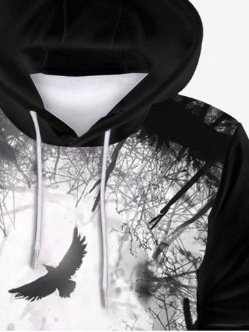 Sweat à Capuche Gothique Aigle Graphique avec Poche en Avant à Doublure en Laine - Noir - Noir