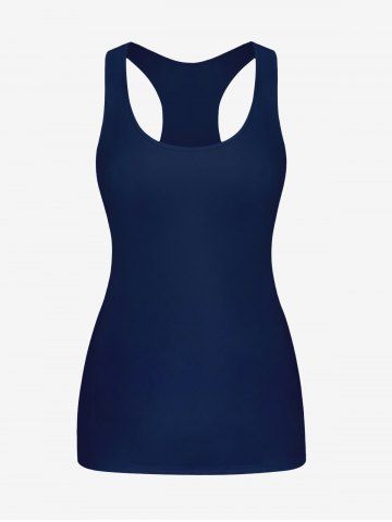Chemisier en Dentelle Transparente de Grande Taille à Col Oblique et Débardeur Au Dos Nageur - Bleu De Minuit - L | Us 12