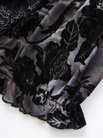T-shirts > Débardeur à manches bouffantes, en maille fleurie floquée, tie-dye, laçage, volants et chaînes superposées, grande taille