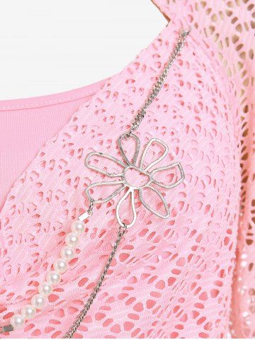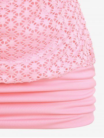 Haut Drapé à Superposition en Dentelle à Manches Papillon Grande Taille - Rose Clair - Rose Léger